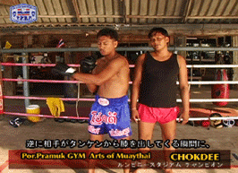 ヤシ畑に囲まれ、川の上にリングを浮かべるこのジムこそ、K-1MAXチャンピオンブアカーオ、ムエタイの殿堂ルンピニースタジアムで6年にわたり王座を守ったナムサックノーイ。同じくルンピニーチャンピオン、ポンサワン、チョークディなど、次々にトップファイターを輩出してきた名門ジムである。このDVDでは、ベールに包まれていた最強ジムのトレーニング、テクニックを、名トレーナー