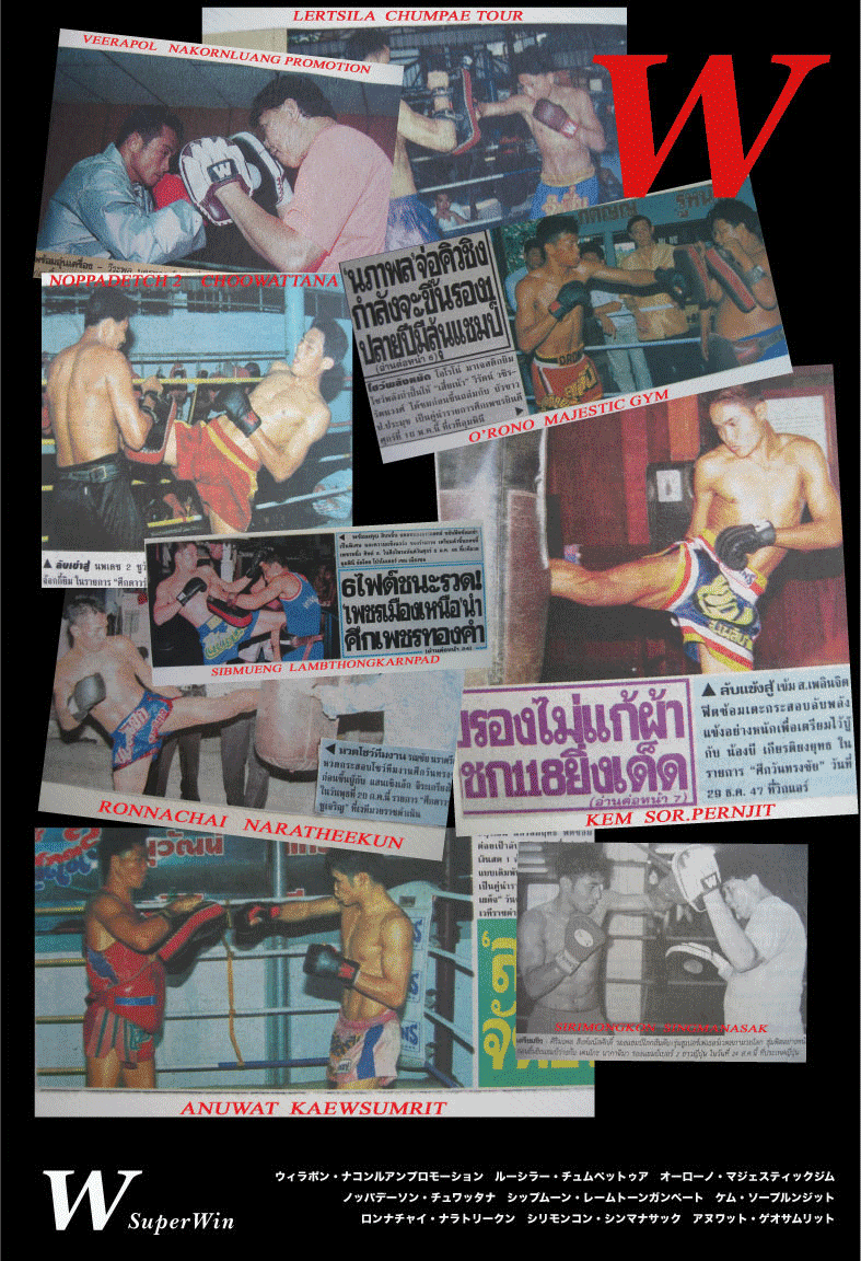 | ポープラムック、ルークプラパート、チューワタナなどのMVPムエタイジムの他、多数のムエタイ戦士、トップトレーナーに支持され続けるスーパーウィンプロダクツが日本上陸。Kプロダクツと共に、東京イサミ(新宿)、イサミ尚武堂(水道橋)福岡イサミなどでも絶賛販売中。ムエタイ