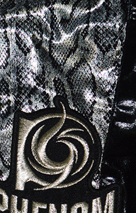 シルバースネーク柄のプリントがおどこされた特殊生地使用。サイドスリットはキックボクシング対応の15cm。手洗いで願いします。