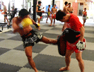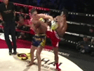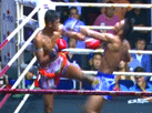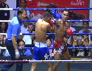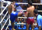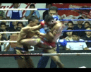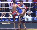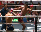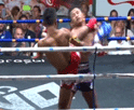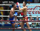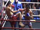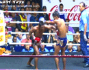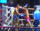 この試合ではサムエーが強さをみせた。ローキックが炸裂で、ふっとんだデッサクダーは思わず顔をゆがめる。 |