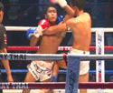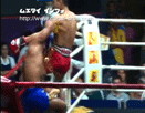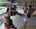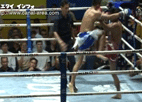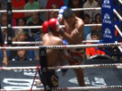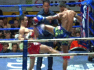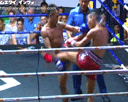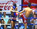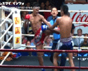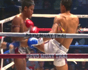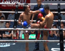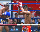 グローブなしでセーンチャイのハイキック炸裂。 |