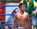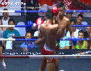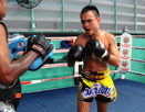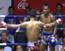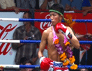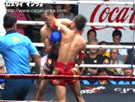 | 舌をだして挑発したあとの、強烈な肘で、カイムックカオを豪快KO。気の強い選手だが 持ち味はタイミングのよい攻撃力。右ミドルが武器だ。 |