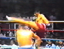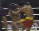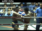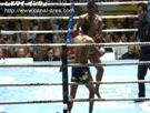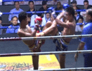 ムエタイで3階級制覇し、WBA,WBCでボクシング王者にもなり日本でも辰吉、西岡、長谷川との対戦でお馴染みウィラポンの貴重なムエタイ映像だ。95年に同国のダーウルンが保持していたWBAバンタム級王座をムエタイから転向後4戦目で奪うというスピード奪取を成し遂げた。これはセンサク・ムアンスリン(ガッツ石松をもKOしているタイの怪物)が75年に転向後3戦目で王座獲得の偉業に続くものである。ほかにもタイの国民栄誉賞も4度受賞してなど文字通りタイの英雄である。対するトートーもそのパンチの強さに一時はボクシングに転向していた時期もある選手だ。所属のポーポンサワンジムにはデッドゥワン、ドークマイパー、トゥガッタトゥーンの3兄弟の他にも、ファイターのドゥワンソムポン、手足の長いテクニシャンのドークマイファイ、そしてこのトートーと個性派が揃っていた。今ではデートカートが稼ぎ頭で頑張っている!そしてこのジムは当時珍しく特定のプロモーターに所属することなくその試合毎ごとに契約を行う言わばフリーな立場を取っていた。その為、所属選手は様々な派閥の選手との対戦が行えた。この試合当時既にラジャSJr.フライ、フライ級王座を獲得してきたウィラポンにとって、前回チャーイノーイをTKOで下してきているとは言えトートーには荷が重かった。2R足を揃えてのワンツーだったが一発ヒットするだけでダウンしてしまうトートー、恐ろしい破壊力だ!!そして直後のフォローで放つ左ロー、ウィラポンがただのハードパンチャーなどではなく素晴らしいテクニシャンな事が垣間見れる。その後のウィラポンの猛攻にレフリーが試合ストップ。恐ろしく強い!!(M,K)
