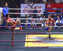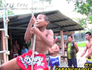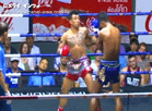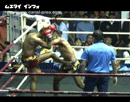 この試合は両ジムがお互いに出し合って勝者が総取り200万バーツを受け取る賭け試合となった。その為、白熱の試合が期待されたが、、2pのハンディも虚 しく試合はピチットチャイの強さばかりが目立ってしまう。強力なパンチとローを叩き込んでいくピチットチャイ、この階級では恐ろしい程の破壊力を秘めてい る。そして3Rついにピチットチャイの剛腕爆発!!ロイチューンを左右パンチでタコ殴り。このパンチはヤバい!非常に危険、かつてのアヌワットの様だ!! ロイチューンは立っているのが精一杯だ。ダウンこそなかったが掛け試合としては一方的な試合となってしまい、ピチットチャイの圧倒的な強さばかりが目立っ た。この男、是非日本で見てみたい!(K.M)