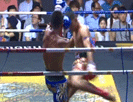 グローブなしの荒々しい試合だが、アルジェリアのダンボがなかなか強い。チャナチャイと激しくやりあう。