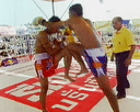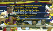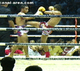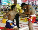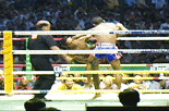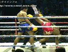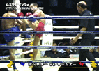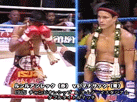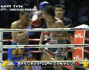レンヨートーナメントを征したばかりのシンダムと、前回、ばく進中のペッブーンチューを大逆転でストップしたノンオーの、スーパースター同士の対戦。試合は予想どおり、両者一歩もひかない激しい展開に。昨年は、シンダム真骨頂の、ミドル、膝のコンビネーションになす術無く敗れたノンオーだが、その後、さらに成長を続けるノンオーは、前回の雪辱を果たせるか。