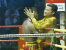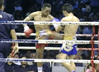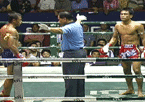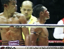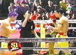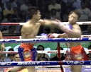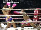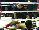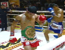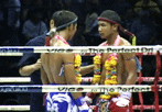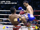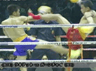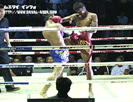 ルンピニー王者ドゥアンソンポンのけがで、急遽代役出場したペッタノン。昨年8月、八王子の「TARGET1st」で来日した時(KO勝利)には、スターのオロノーやノンオーよりも女性に写真をせがまれていた、とにかく男前のムエタイ戦士だ。元ルンピニーフェザー級王者、パンサックが圧倒的に有利とみられたが、2R、ペッタノンがハイキックからの跳び膝でパンサックからダウンを奪う。鬼の形相で攻めるパンサックをペッタノンは挑発し。。