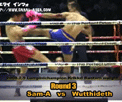 1Rはまるでボクシングのようなパンチのみの打ち合いに。後半はお互い膝で責め合う。2ポンドのハンディがあったにもかかわらず、モンコンチャイがペッタウィーを敗る。