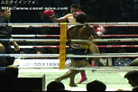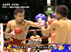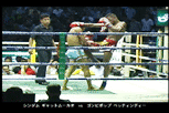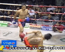 2006年MVPのノラシン。攻撃的でダイナミックな動きは、先日の全日本キックで日本のファンを震撼させたばかり。1Rから得意のパンチで激しくせめていくが、これを冷静に対処するパランポンが、4R、跳び膝から肘、そして膝の連打でノラシンをKO。圧巻だ。