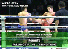 ラジャダムナンスタジアムの看板選手として活躍するジョムトーンと、ムエタイの頂点いったも過言でないノンオーがついに激突。互いに蹴りが得意なうえ、ジョムトーンはパンチ、ノンオーは首相撲の強さという強力な武器がある。ノンオーの速いうえにダイナミックな動きに、ジョムトーンの対応が遅れ始め・・